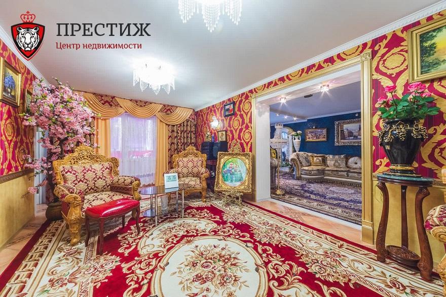 Здесь 7 комнат, 4 санузла с сауной и бассейном, комната для персонала, личные гардеробные в спальнях и все остальные признаки жилья очень обеспеченного человека. Отделка и мебель в доме выполнены в версальском стиле с множеством узоров, картин, драпировок, колонн, огромных кроватей и ковров.