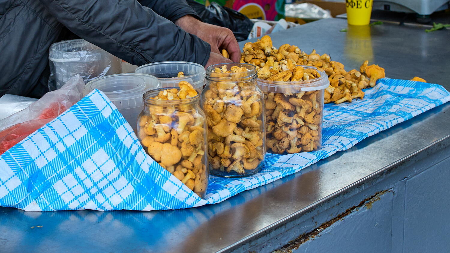 И конечно на рынке уже появились лисички. За банку или небольшое ведрышко просят 10 рублей, за стаканчик – 5 рублей.