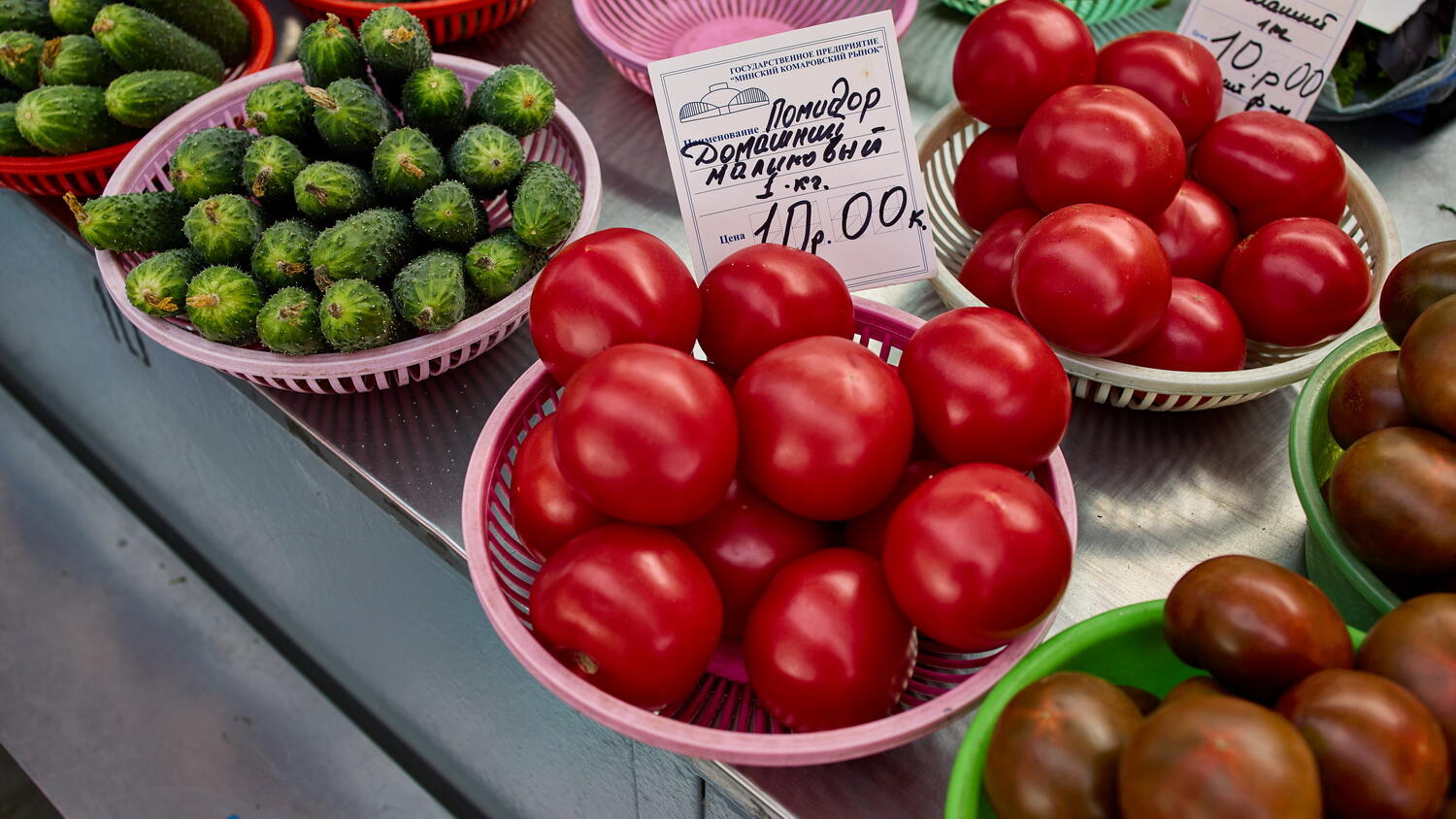 На рынок привезли не только иностранные томаты, но и свои. За прилавками «частников» знакомимся с Татьяной: вместе с мужем она на три дня приезжает из Пинска, чтобы продать свои овощи. Урожай этого года отвоевывали у непогоды с потом и кровью.