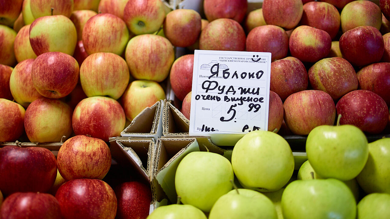 И вот мы оказываемся в переходе между крытым и сезонным рынком, где развернулся настоящий яблочный рай. Здесь круглый год можно найти белорусские яблоки самых разных сортов. На месте продавец Дмитрий сориентирует по всем сортам. Стоимость – от 3,99 до 9,99 BYN, основная масса по 5,99 BYN.