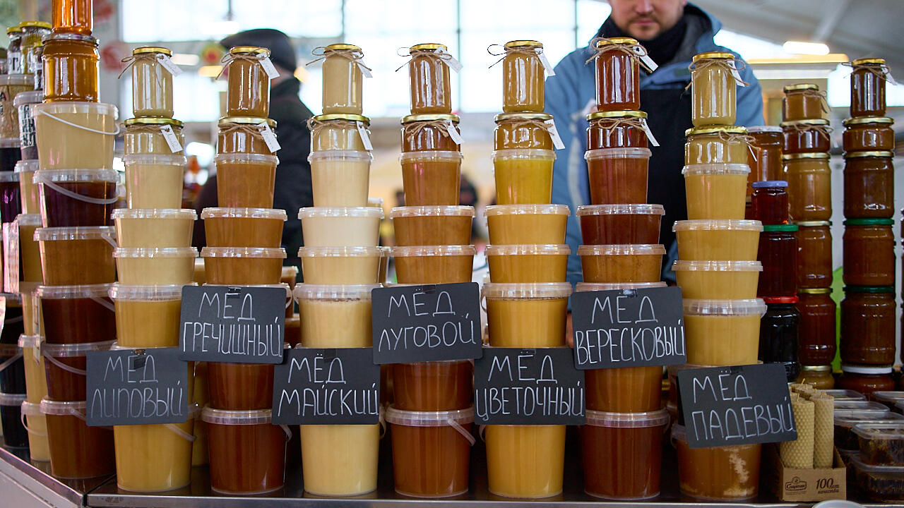Закупка без десертов для чая – не закупка. Например, мед можно найти и зимой: цветочный, падевый, луговой, липовый и тот самый вересковый, про него еще в песнях поют. Маленькая баночка стоит 13 рублей, верескового – 21 рубль. Все из-за технологии сбора, объясняет продавец Артур: вересковый мед густой, поэтому даже на сбор приходится тратить больше времени и сил.