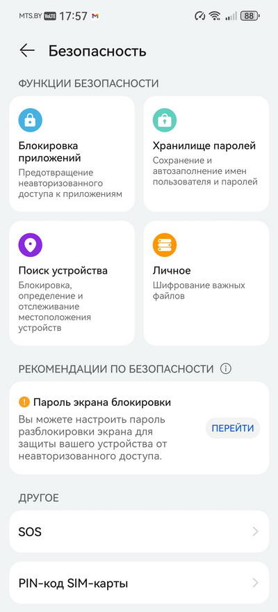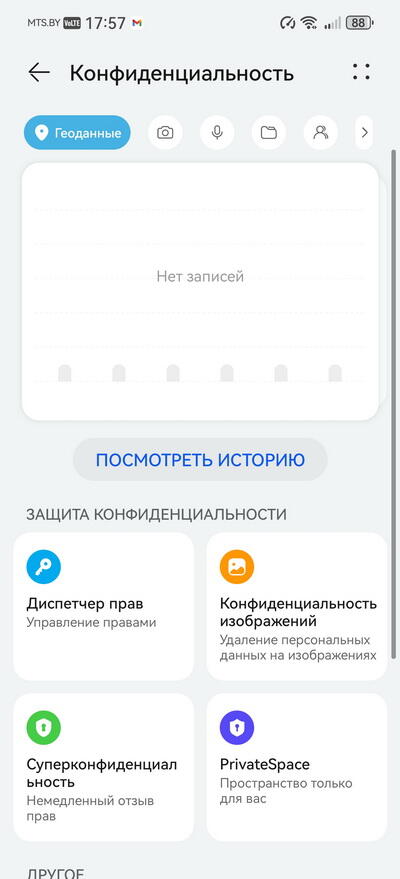 Дополнительно в фирменной оболочке EMUI 14 предусмотрен собственный центр безопасности, с помощью которого можно сканировать устройство на наличие киберугроз, поступивших извне. С другой стороны, центр конфиденциальности позволяет отслеживать, какие приложения собирают данные о действиях пользователя для маркетинговых целей, и ограничивать им доступ к своим персональным данным. Благодаря ей смартфон также умеет распознавать пользователя по взгляду и скрывать уведомления, если на экран смотрит кто-то другой.