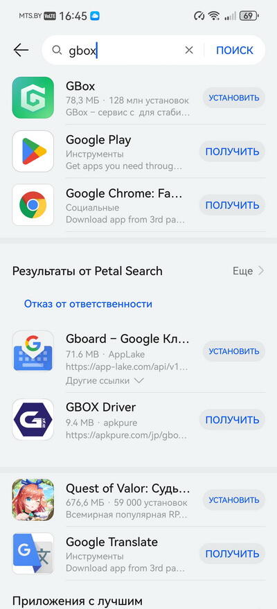 Чтобы начать пользоваться GBox, достаточно найти его через поиск в Huawei AppGallery, установить и дать все необходимые разрешения. Далее вновь авторизуемся в аккаунте Google, и ассортимент магазина Google Play – как на ладони.