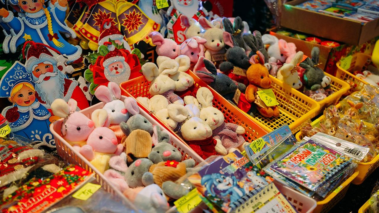 Самый бюджетный вариант мы нашли почти у входа со стороны вывески «Сезонный рынок». Здесь шарики диаметром 3 см стоят 40 копеек, есть также шарики покрупнее и фигурки Деда Мороза за 1 рубль.
