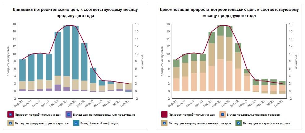 В сентябре годовой прирост потребительских цен сложился на уровне 2%, отмечает регулятор.