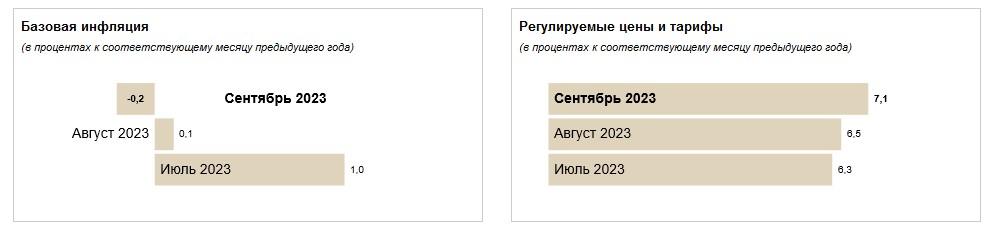 Базовая инфляция в сентябре 2023 г. составила 0,4% к августу 2023 года, к декабрю 2022 года – 2,9%. Об