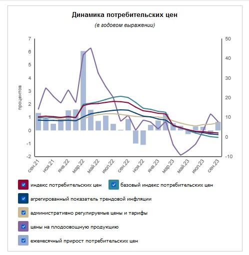 По итогам сентября 2023 года Нацбанк дает общую характеристику изменения потребительских цен: