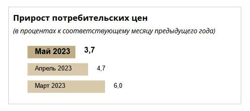 В мае 2023 г. годовой прирост потребительских цен составил 3,7%.