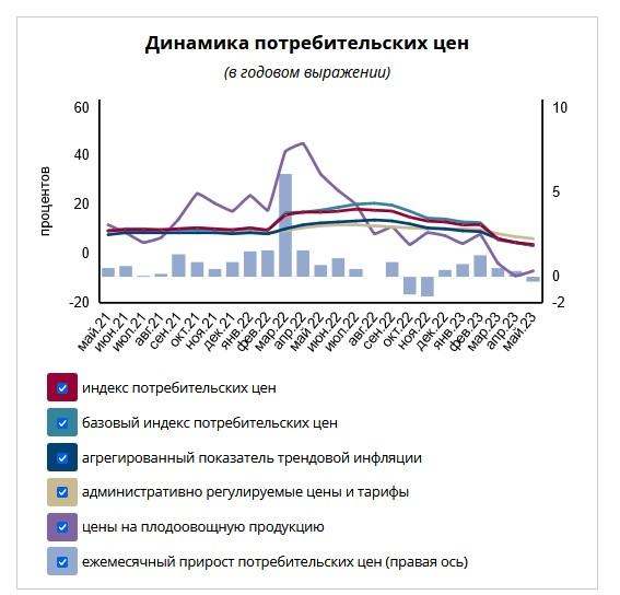 По итогам мая регулятор дает общую характеристику изменения потребительских цен в стране: