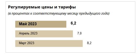 Нацбанк приводит данные о регулируемых ценах и тарифах. В мае показатель в годовом выражении составил 6,2% (в апреле и марте было 7,0% и 8,2% соответственно).