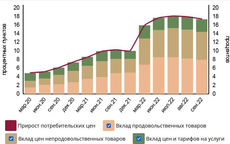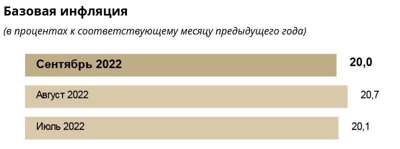 Базовая инфляция в сентябре 2022 года составила 20% в годовом выражении.