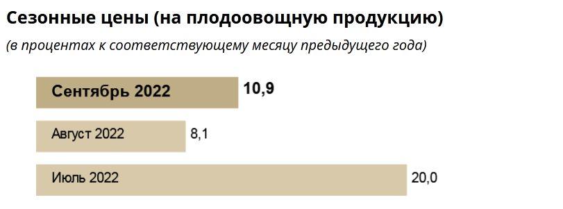 Сезонные цены в сентябре выросли по отношению к августу (10,9% в годовом выражении против 8,1%). В июле 2022 года было 20,0%.