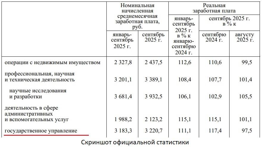 В сентябре текущего года по отношению к предыдущему месяцу реальная зарплата в госуправлении сократилась на 2,5%, по сравнению с сентябрем 2024 года выросла на 17,4%.