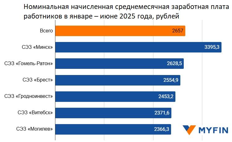 В январе – июне 2025 года номинальная начисленная средняя зарплата работников свободных экономических зон вышла на уровень 2657 руб. (+15,5% к январю – июню 2024 г.).