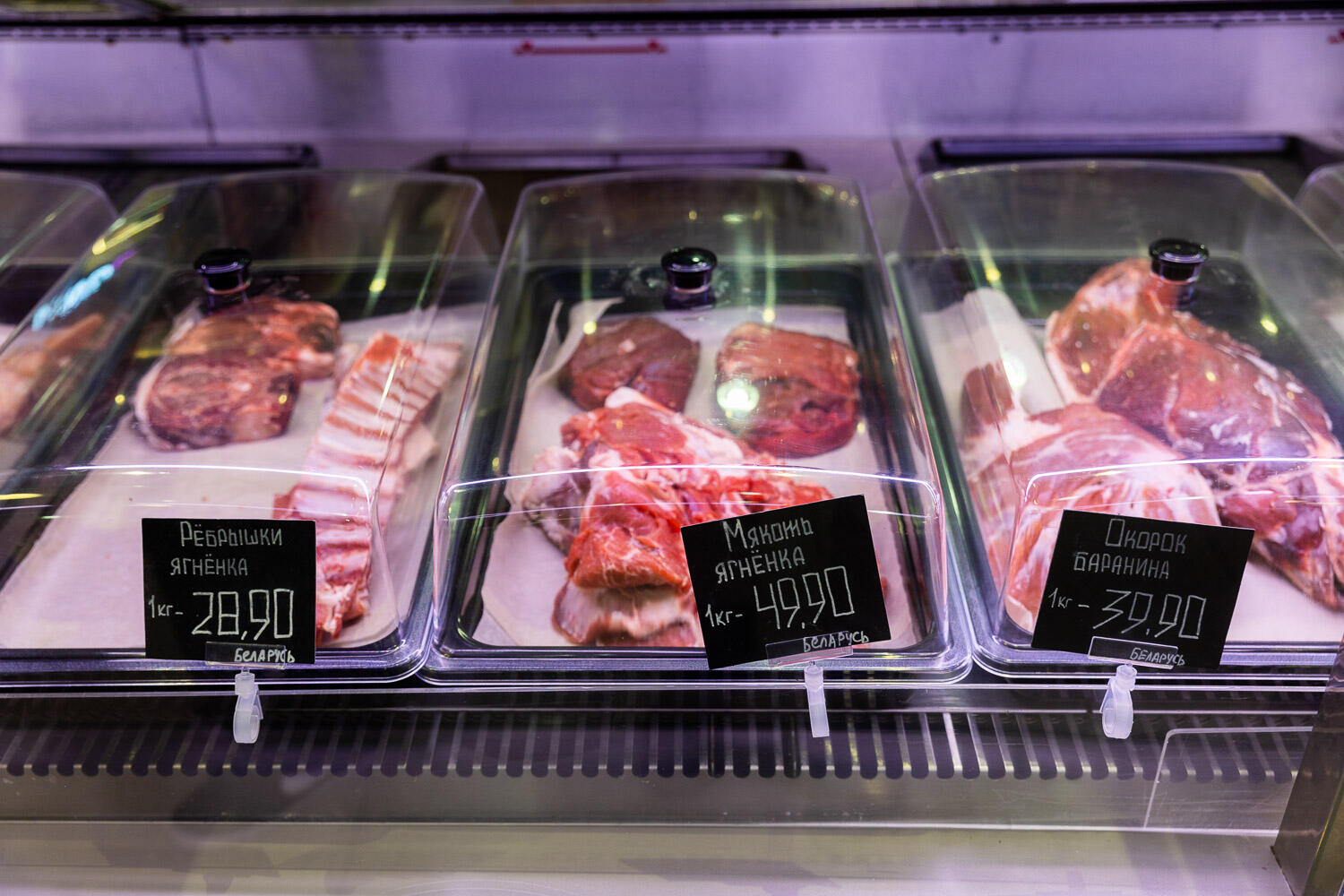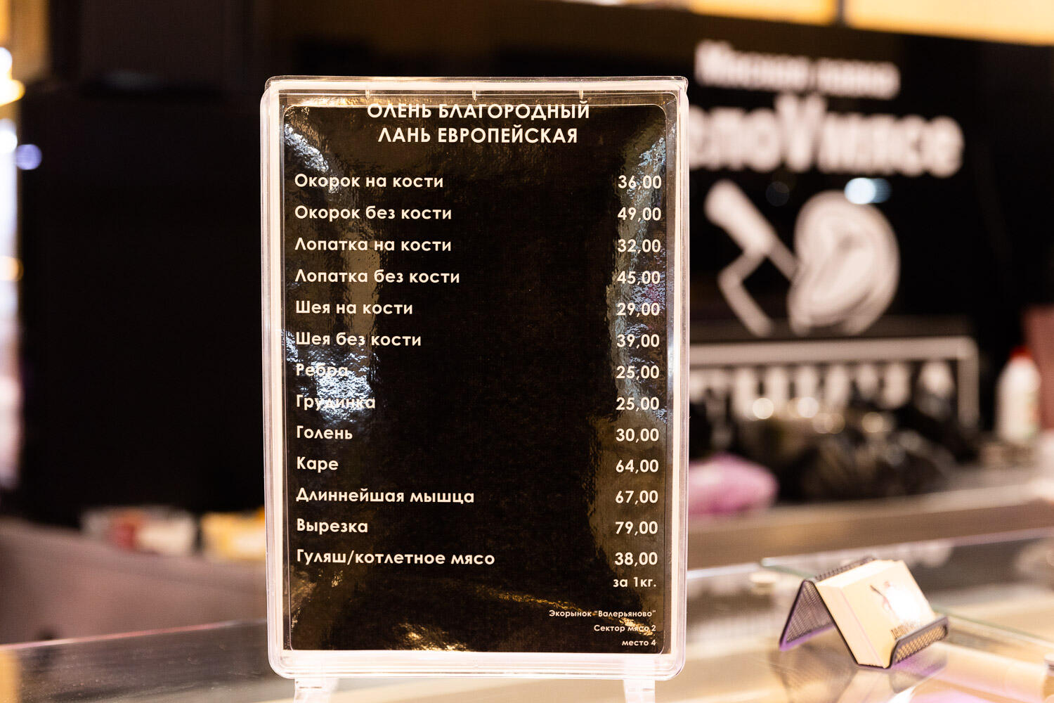 В отделе свежего мяса наше внимание обращают на оленину. Дикое мясо? Нет, из охотничьего хозяйства в 100 км от Минска.