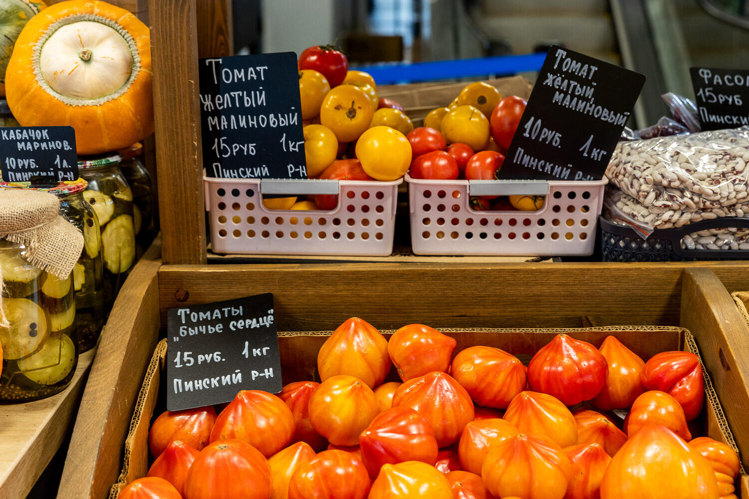 Здесь есть и картофель, и морковь, и редис. Но главный упор – на помидоры разных сортов (их, сортов, летом было около 50), в том числе эксклюзивных. Самые дорогие видим по 30 рублей. Почему так дорого?