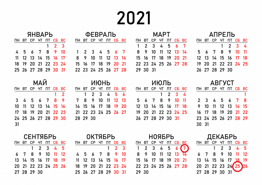 И только 7 января выпадает на пятницу, а значит ближайшие 3 выходных подряд белорусам предстоят только в январе 2022.