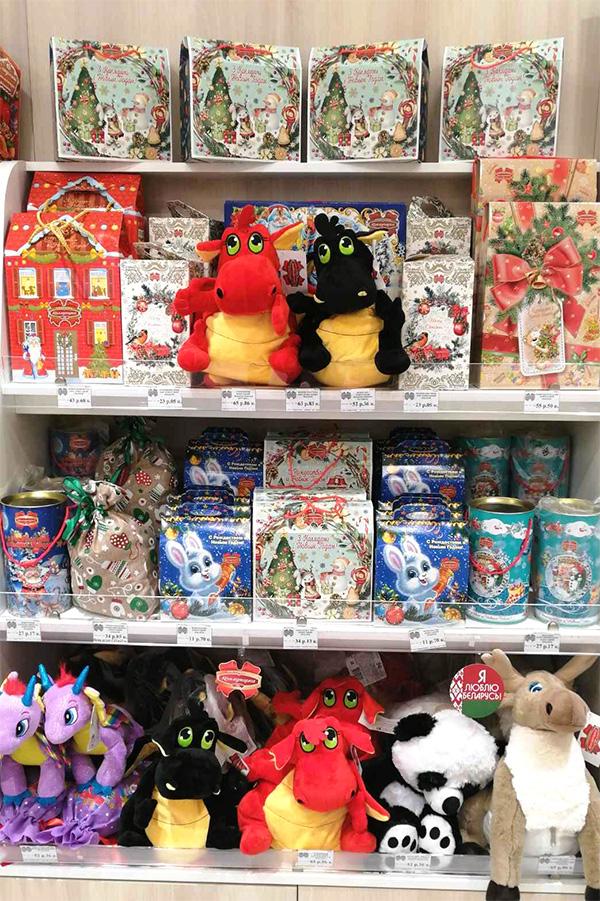 В торговых организациях ассортимент новогодних подарков предлагается по розничным ценам от 7,37–7,99 рубля (0,3 кг) до 70,50 рубля (2,5 кг) и 81,12 рубля (3,0 кг).