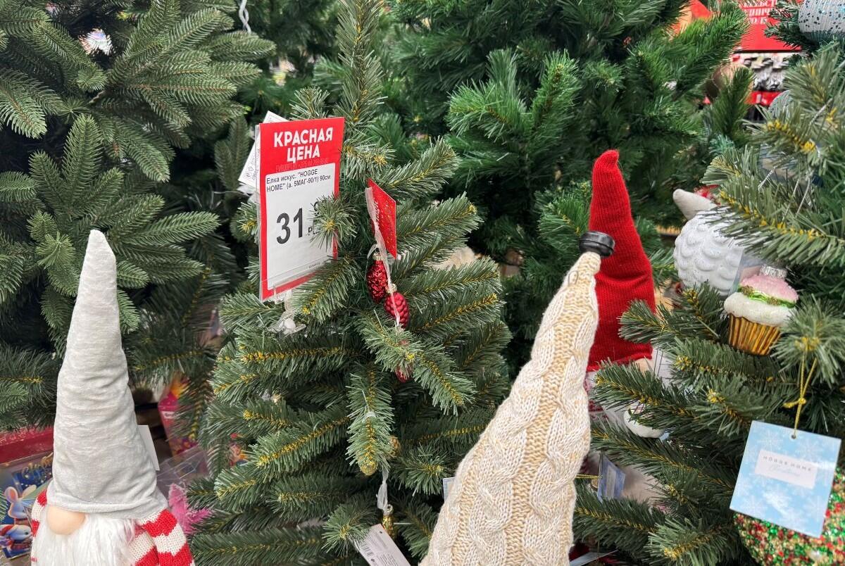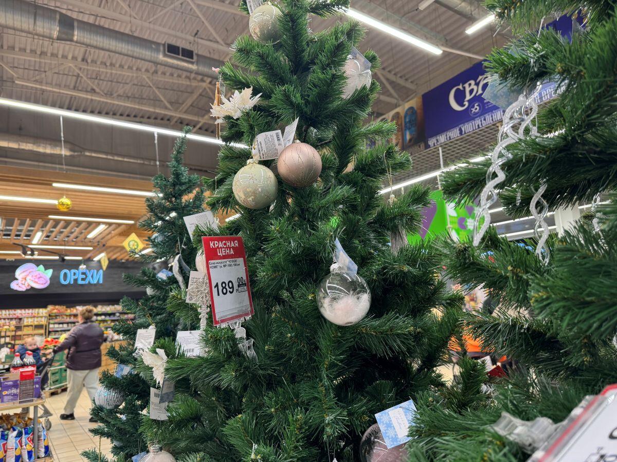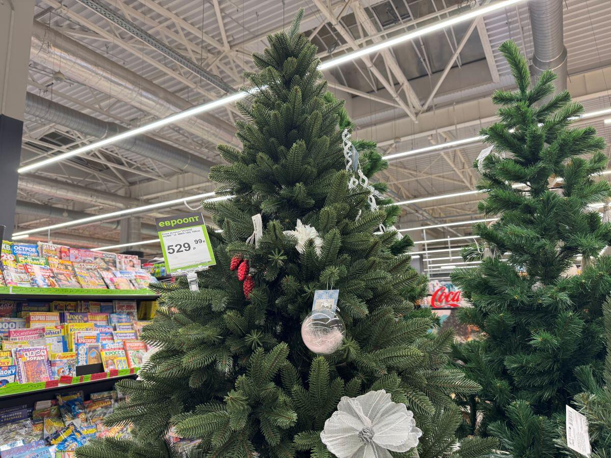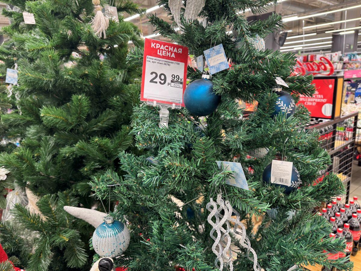 В «Гиппо» сезонный товар предлагают по акционной цене. Литое дерево 90 см – 119,99, елка высотой 210 см – 829,99 руб.