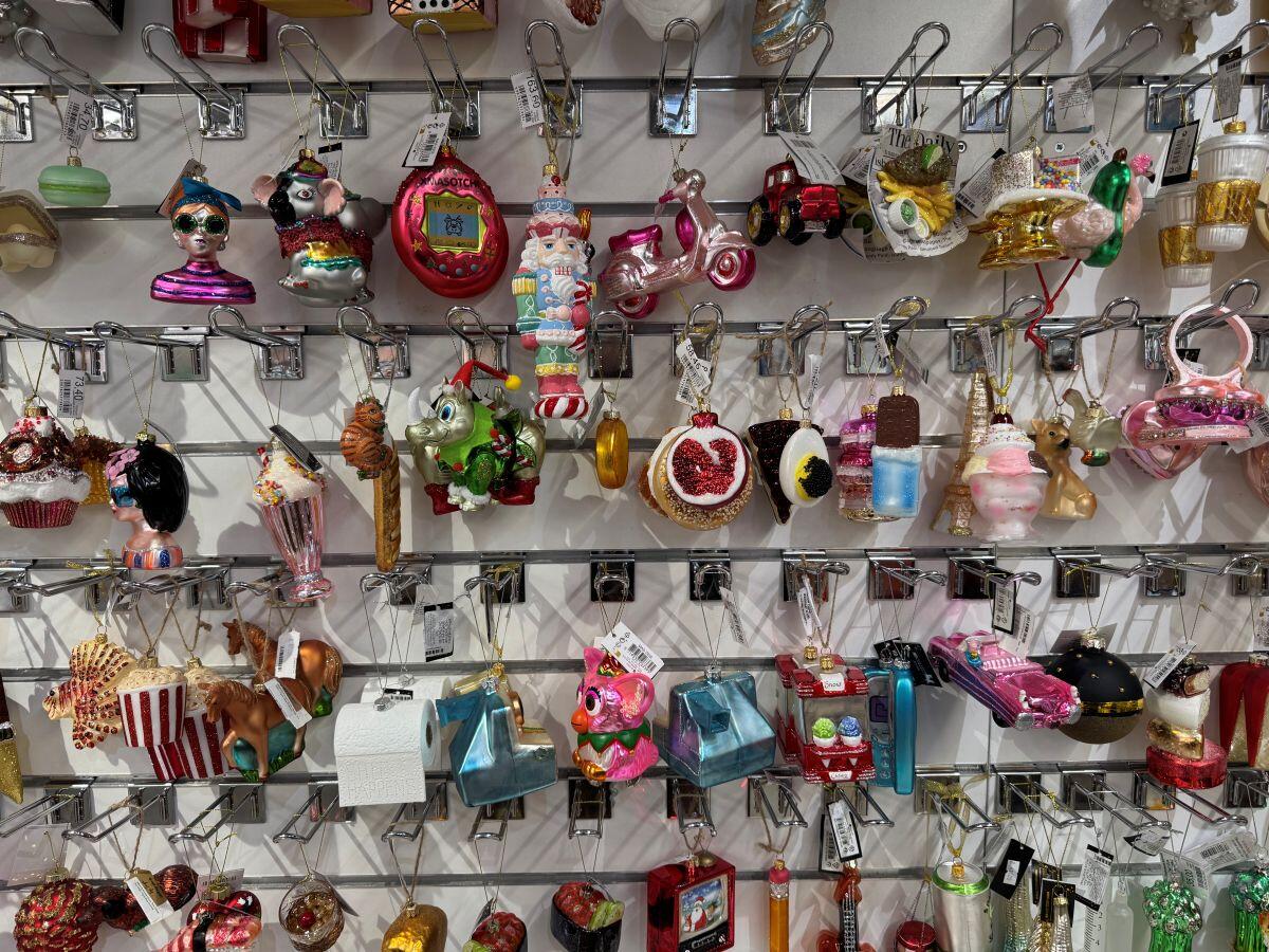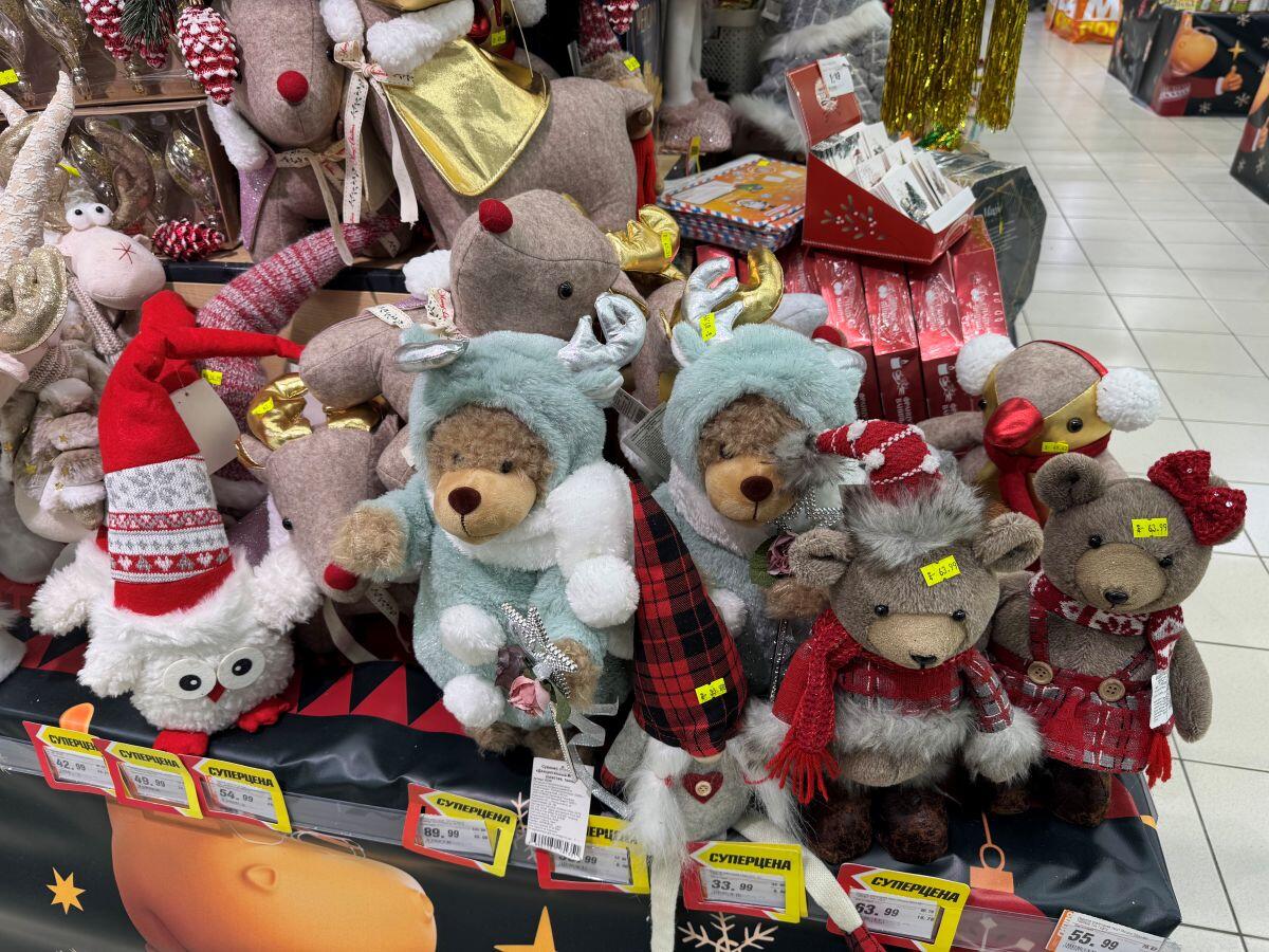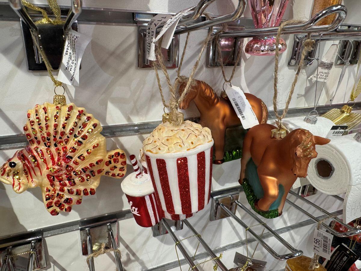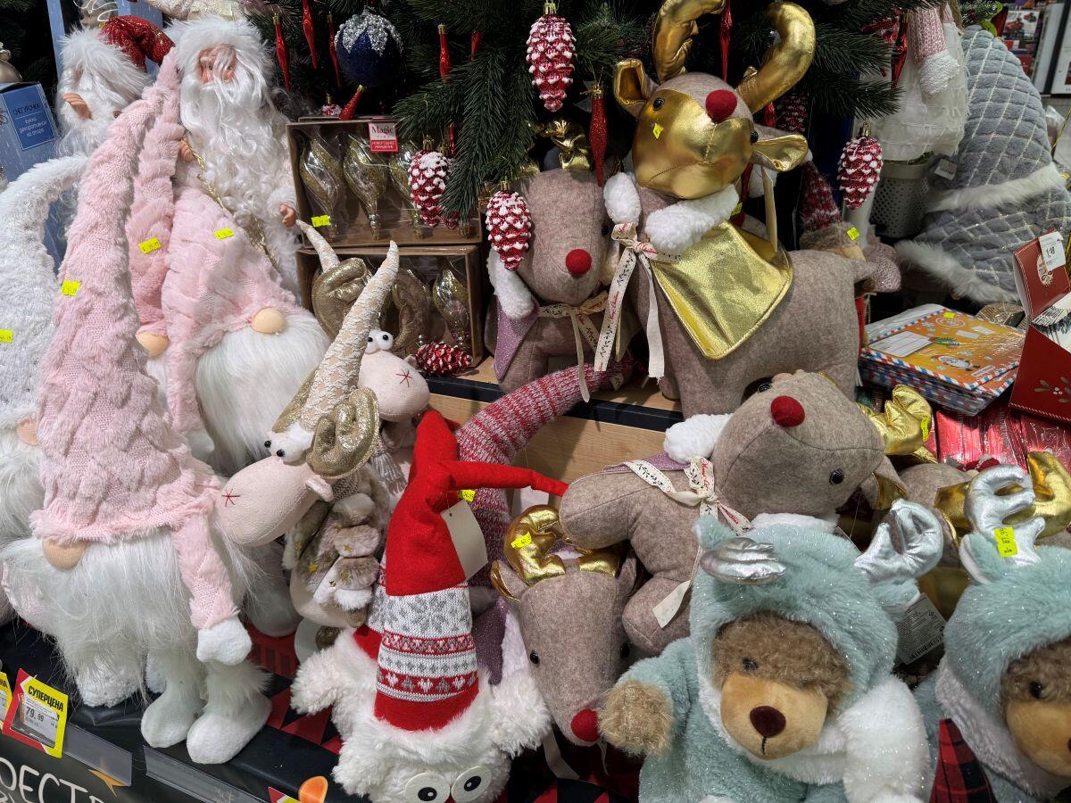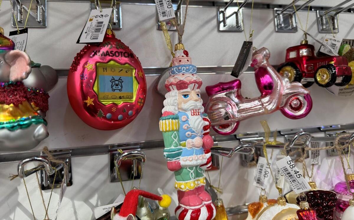 Белорусский бренд «Грай» удивляет елочными украшениями каждый год. Представлены шары, звери, сласти и даже сказочные персонажи. Например, в «Гиппо» есть отдельный стенд от производителя. Каждая фигурка упакована в свою коробочку, что уже можно считать самостоятельным подарком, а еще позволяет в сохранности доставить хрупкое стекло. Самые интересные фигурки стоят в среднем 25 рублей за штуку, лишь на нижних стеллажах удалось обнаружить пару шаров за 10,41 и 11,71.
