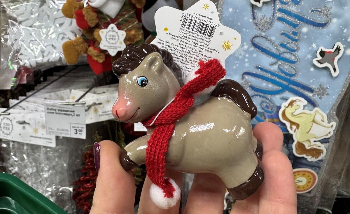 Символ наступающего года – лошадь – можно купить за 4,60, правда, эта больше похожа на пони или ослика.