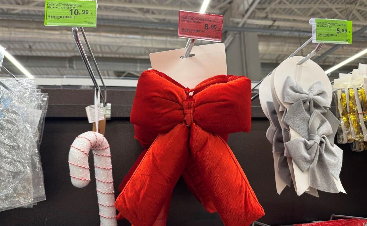 Из модных позиций имеются набивные банты из ткани и леденцы. Акцентный красный бант – 8,99 руб. За два украшения поменьше в сером цвете просят 5,99, а легкий леденец с блестками – 10,99. Самая дешевая елка в голубом цвете напоминает ершик и стоит 4,99.