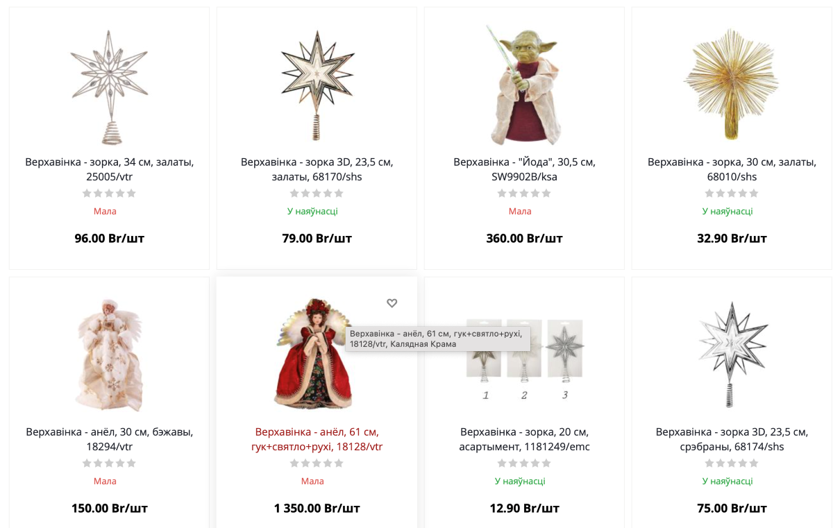 Нетривиальные игрушки каждый год предлагает «Калядная крама» в Минске. Заказать самобытные украшения из соломы или качественные наборы шаров можно и в интернет-магазине. Начальный ценник за один шар в среднем стартует от 25 рублей, верхний предел за новогоднее убранство назвать сложно. В самой «краме» вас ждет настоящий музей с рождественской деревушкой, батлейкой и другими элементами декора. После завершения зимнего бума на елки, примерно в середине января, устраивают традиционные распродажи.