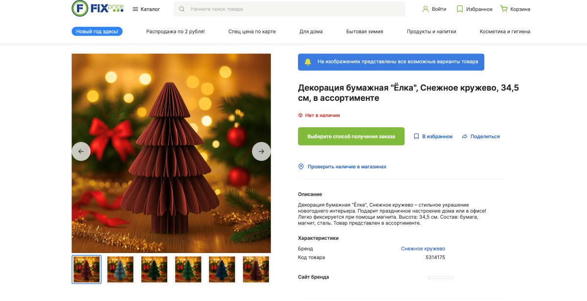 Еще осенью в соцсетях завирусились бумажные елочки в различных цветах, как из Pinterest. К сожалению, на сайте украшений нет в наличии, а в магазине сообщили, что за этим товаром мы опоздали месяца на два, а то и больше. Именно тогда популярную позицию разобрали. По словам консультантов, сейчас венцом коллекции является камин. Пластиковая инсталляция горит теплым светом. Стоимость светодиодного камина – всего 20 рублей.