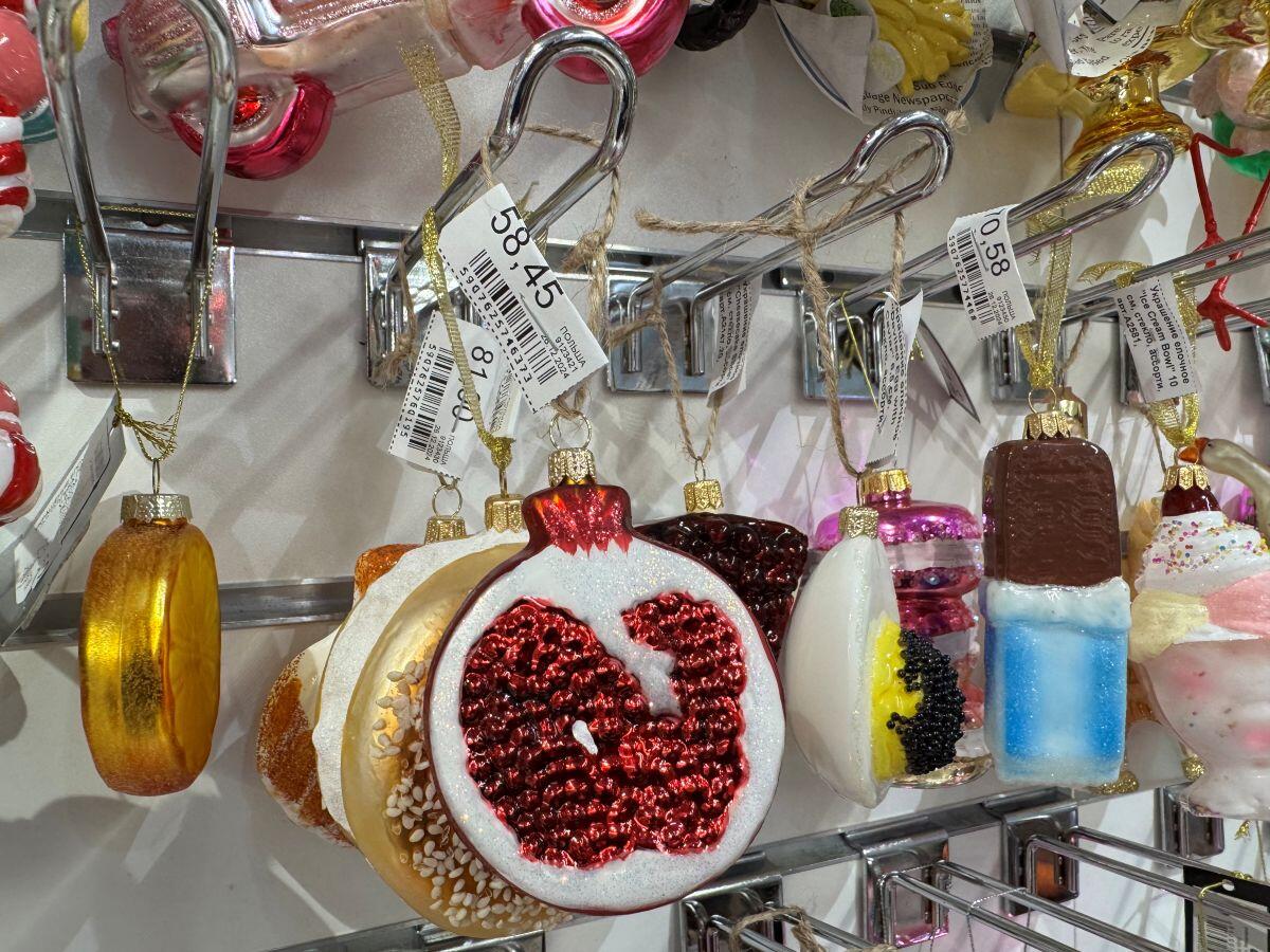 В магазине «Леонардо», где представлены товары для хобби и рукоделия, также имеются уникальные елочные украшения: щелкунчики, Чеширский Кот, яйцо с черной икрой и даже автомат для приготовления мороженого. Все игрушки выполнены из стекла и сделаны в Польше. Половинка граната будет висеть на вашей елке за 58,45. Эскимо стоит 70,85, Щелкунчик в пастельных оттенках – 163,60, ведро попкорна с колой – 117,80, а вот лошадка обойдется в 49 рублей. Игрушку в виде рулона туалетной бумаги также не назовешь экономным вариантом – 34,80.