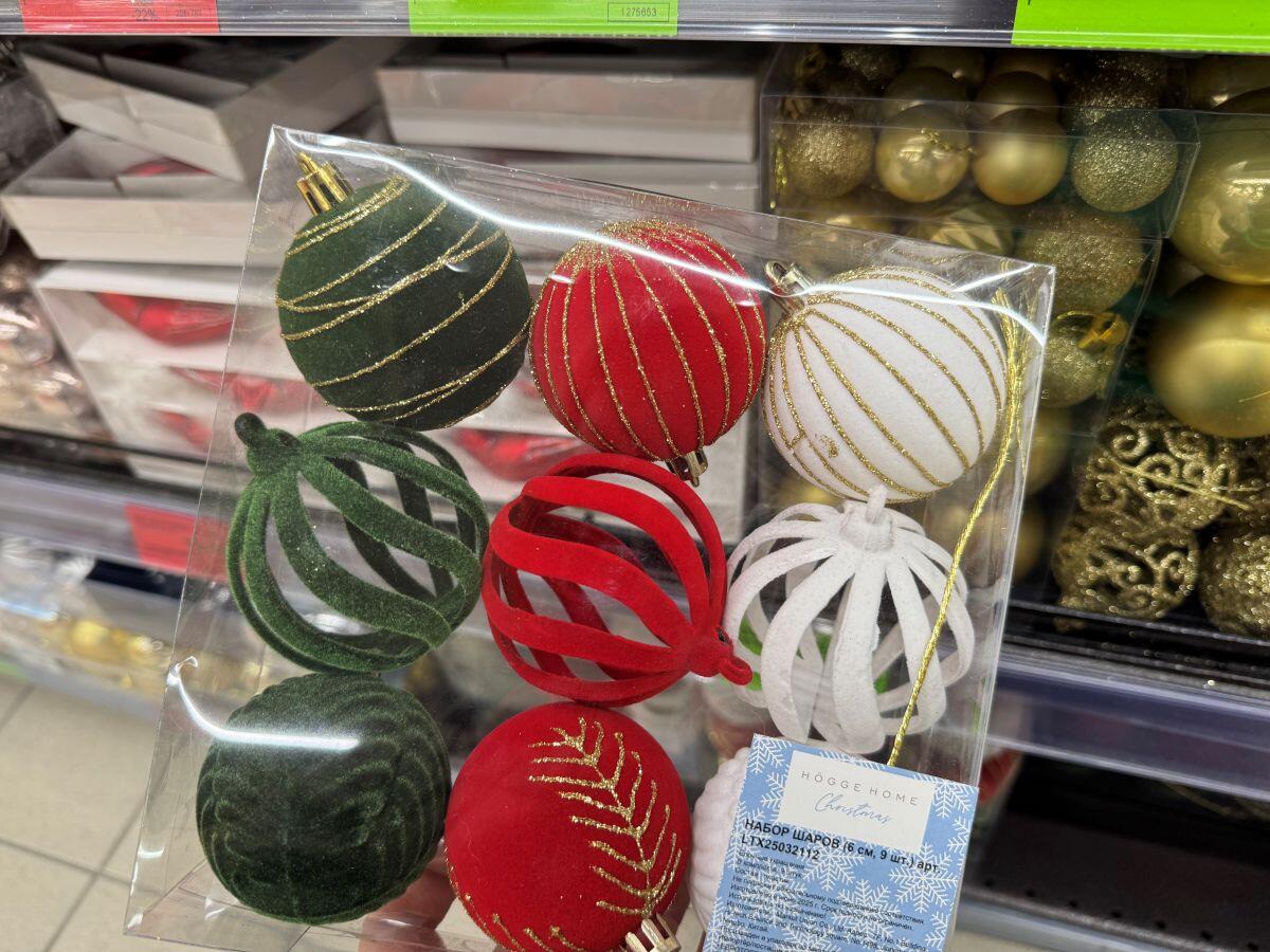 Представим, что главный атрибут праздника вам нужно украсить «с нуля». В таком случае лучше отправиться в доступные гипермаркеты и закупиться готовыми наборами украшений. Стильные варианты, а порой даже в стеклянном исполнении, найдены в «Евроопте». Три стеклянных прозрачных шара с каймой – 13,99 рубля, набор шаров в трендовом кофейном оттенке – 11,99 за 8 штук. Прозрачные шары – 4,99 на скидке за 6 украшений. Набор шишек также из 6 единиц стоит 13,99. Свеча в виде имбирного человечка – 6,99. Шары в самых новогодних оттенках и бархатном исполнении – 14,99 за 9 штук. Мелкие подвесные украшения обойдутся дороже, чем в Fix Price, – от 4 до 9 рублей.