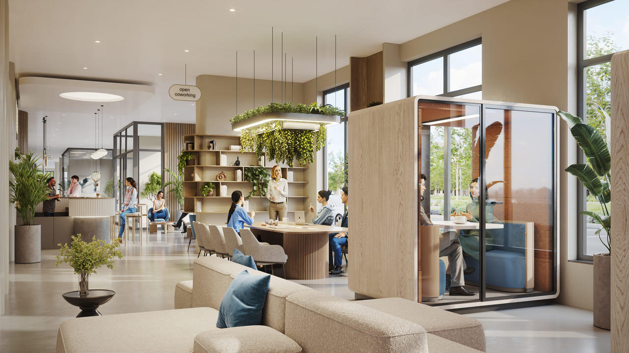 В клубе жильцов позаботились об особых местах для работы, подходящих как для фрилансеров, так и для сотрудников компаний на удаленке. Есть зоны коворкинга открытого и закрытого типа, а также три офисные комнаты.