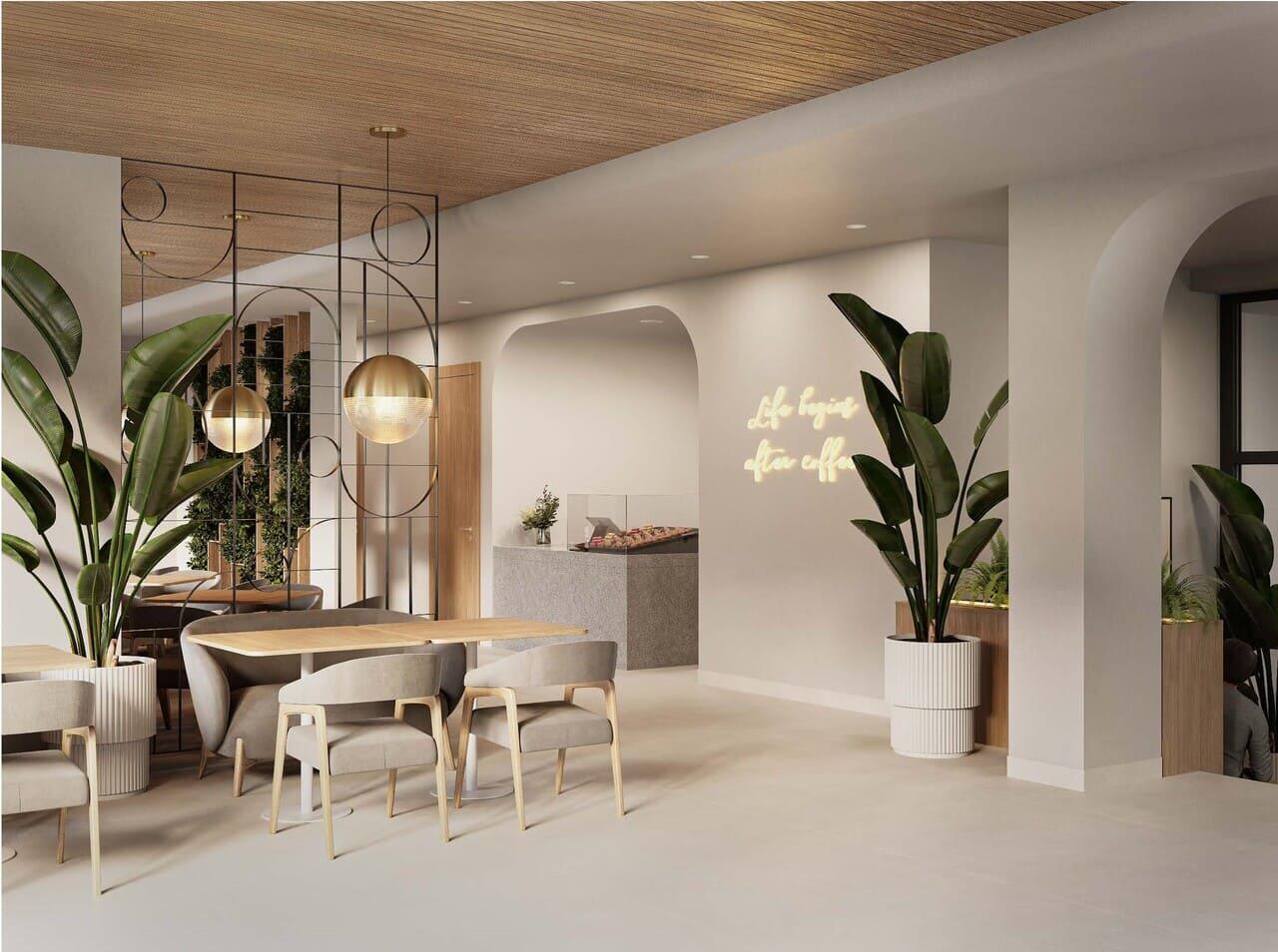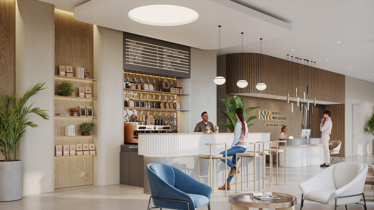 В продолжении Клуба жильцов расположено кафе, где приятно провести утро в одиночестве с книгой или встретиться с друзьями, не покидая пределов дома. Кафе на первом этаже – это продуманное удобство, которое становится частью повседневного комфорта.