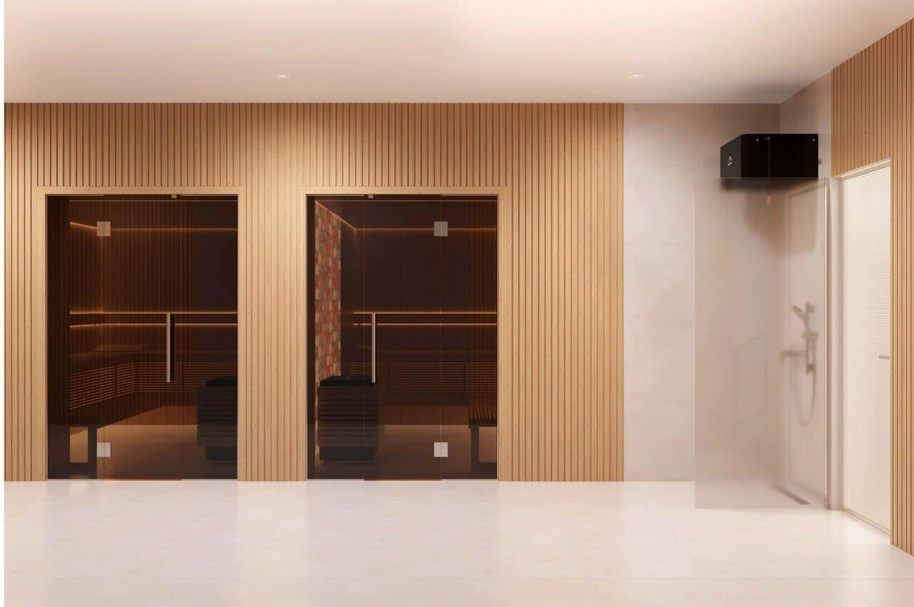 Спа-зона с финскими саунами, где жильцы смогут восстановить силы после тренировки или рабочего дня. Тут же будет оборудован обливной душ и лаунж-зона с лежаками – все для отдыха и релаксации.
