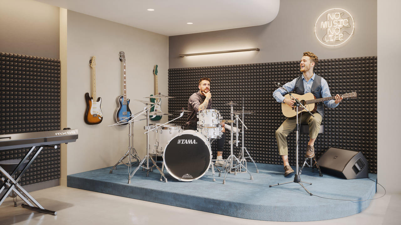 Оборудована музыкальная комната. Современное пространство для занятий музыкой и уютных творческих мероприятий.