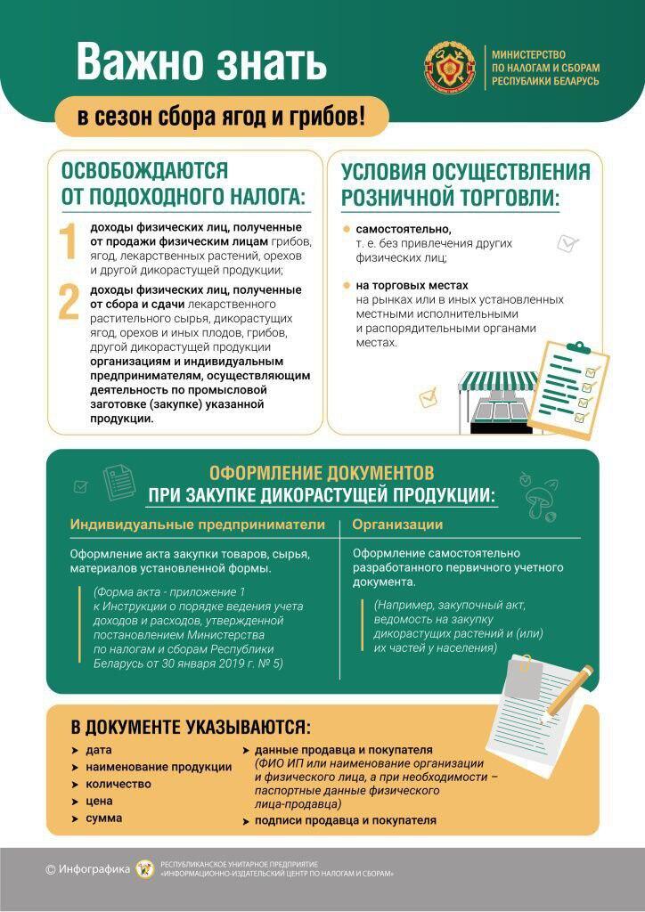 Об особенностях налогообложения при осуществлении сбора и реализации ягод, грибов и другой дикорастущей продукции рассказали в Министерстве по налогам и сборам.