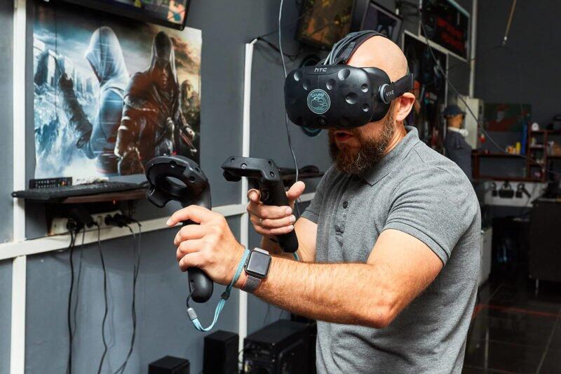 Особенность клуба в том, что в нем нет ограничения игрового пространства – можно свободно двигаться и совершать физические действия, одновременно играя в виртуальную реальность.