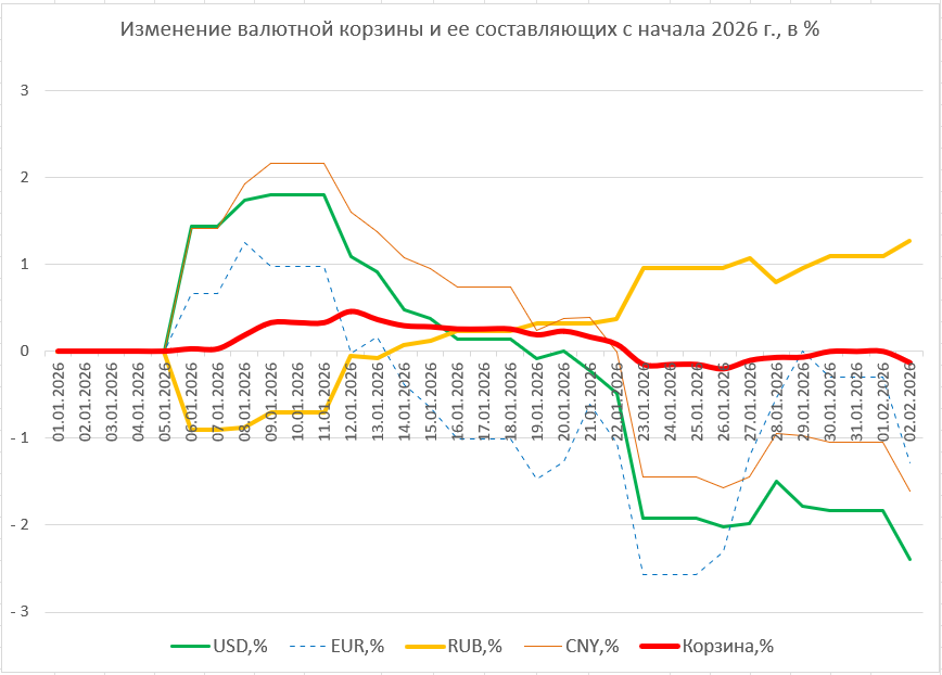 На этот раз рост курса российского рубля в составе валютной корзины «перевесил» снижение доллара и юаня. В результате стоимость корзины выросла на скромные 0,07%, что означает соответствующее ослабление национальной валюты.