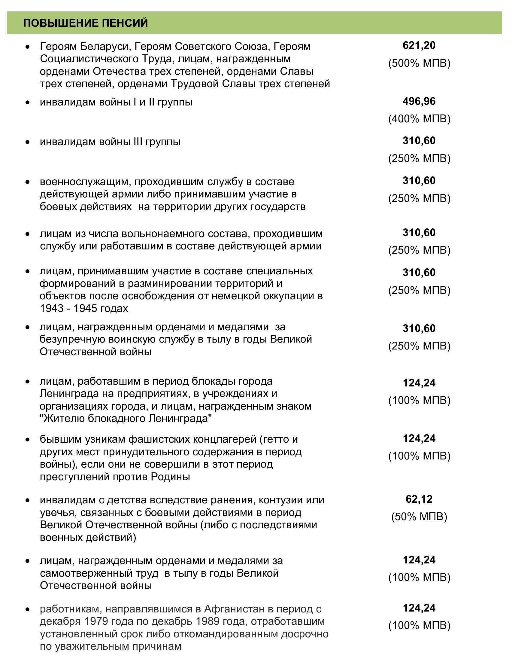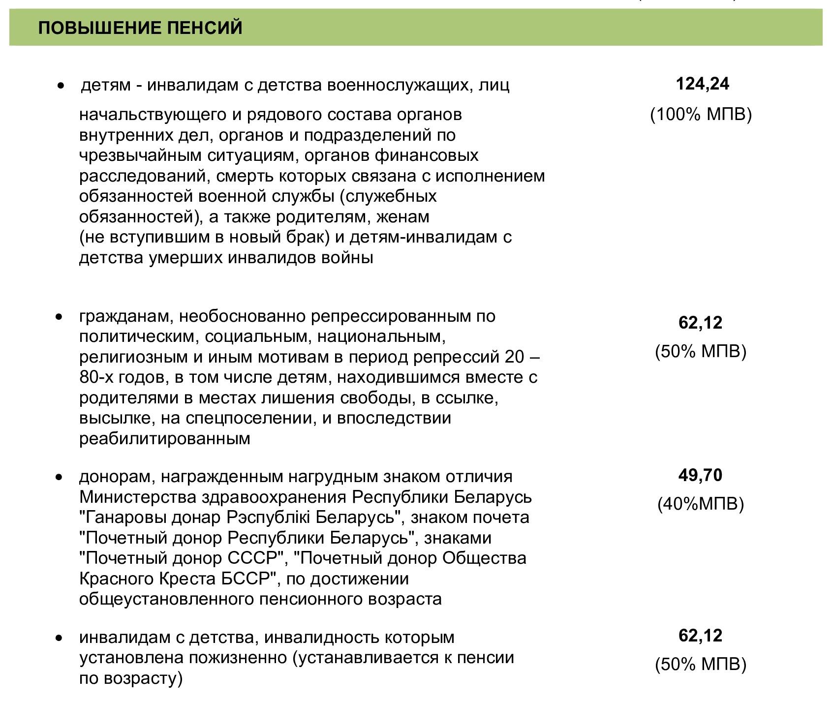 Повышения пенсий отдельным категориям пенсионеров
