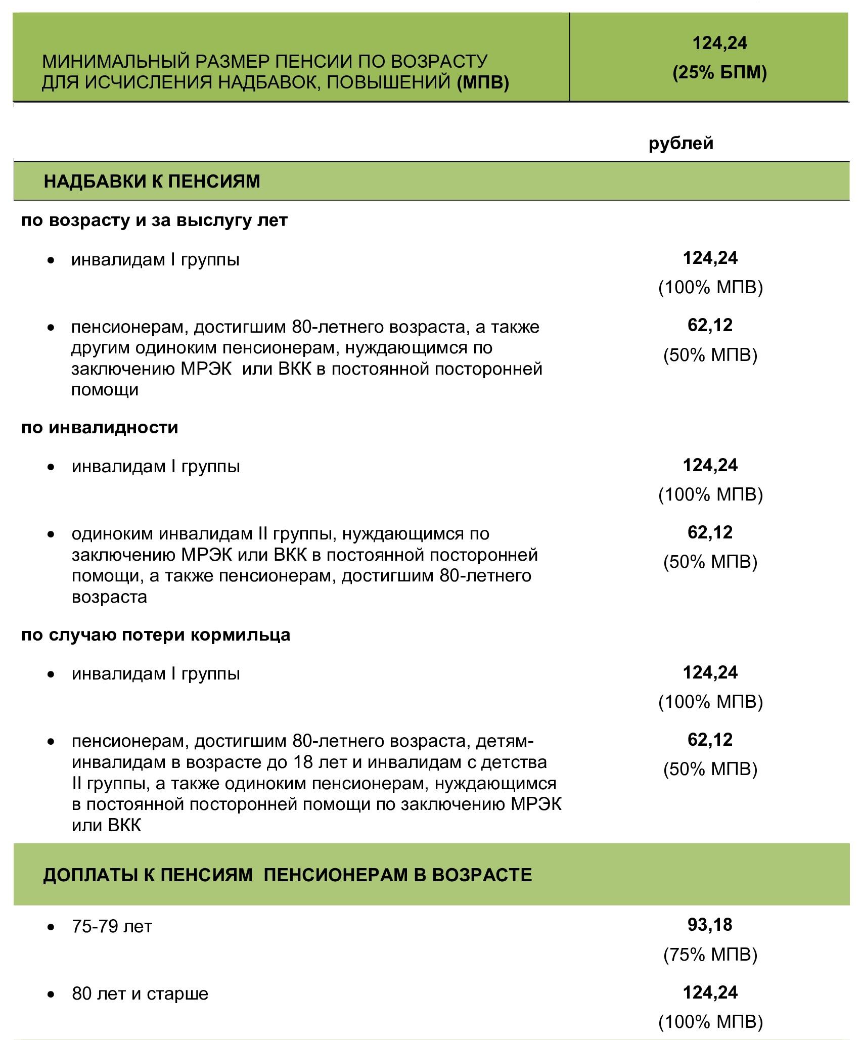 Перерасчет социальных пенсий, а также минимальных трудовых пенсий, надбавок и повышений к пенсиям, доплат к пенсиям лицам в возрасте старше 75 лет происходит чаще — в связи с изменением бюджета прожиточного минимума (БПМ).