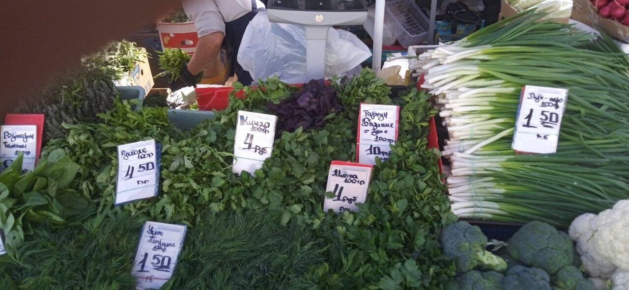 Кроме черемши, на прилавках густо «выросла» и другая зелень, привезенная из белорусских теплиц. Разброс цен солиден – 100-граммовый пучок лука можно купить за 1,2 рубля.