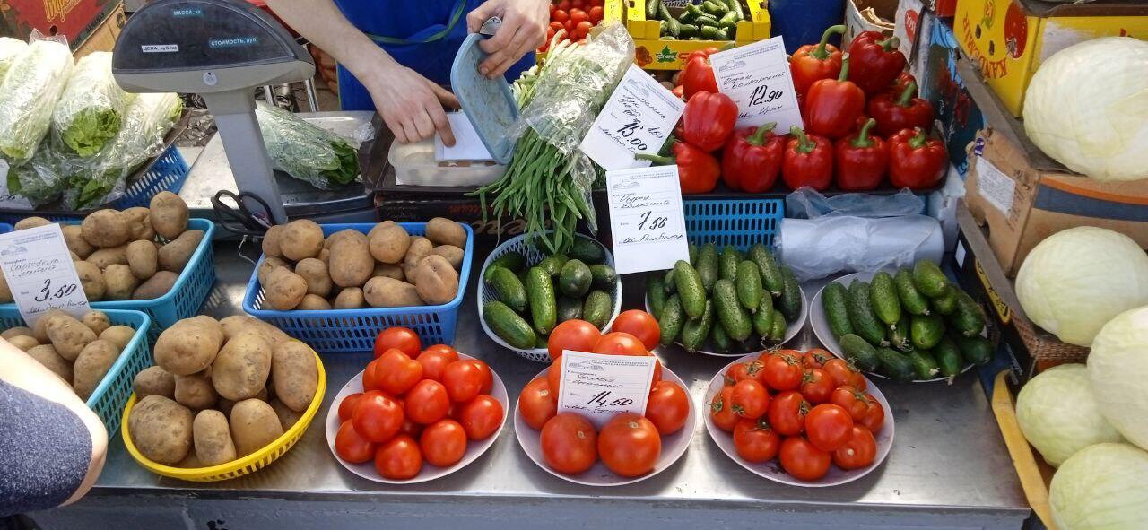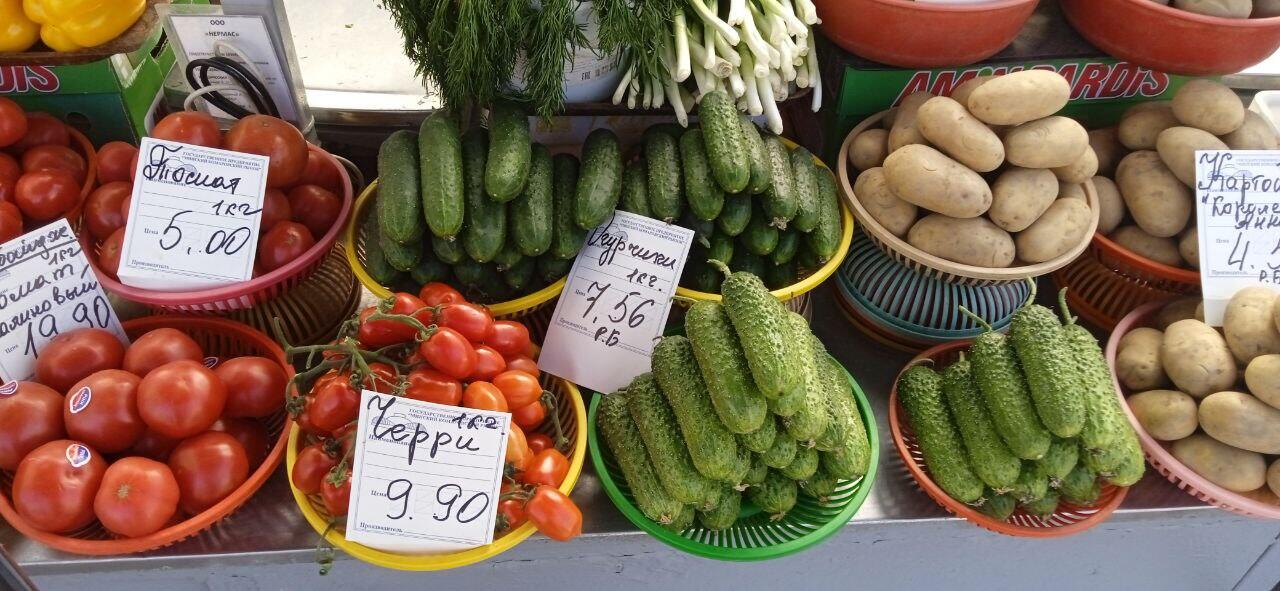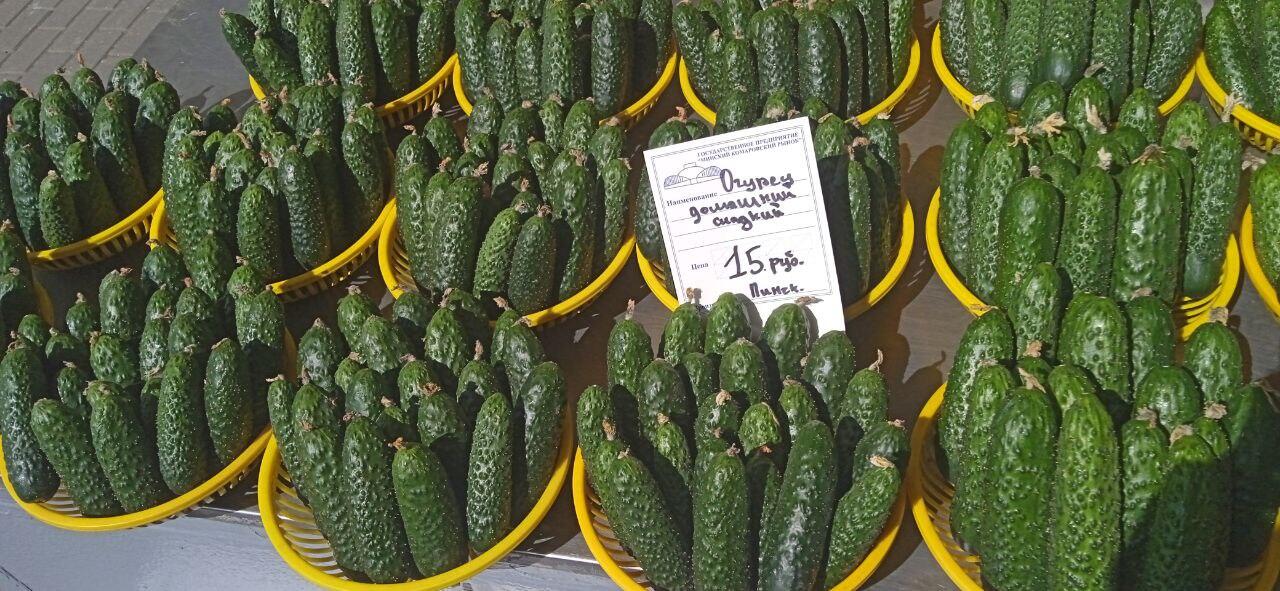 Можно купить помидоры и в банках – как поведал продавец, по 25 рублей за кило. Рядом выбивающиеся из общего ряда ценой огурцы, – 20 рублей за кило, когда по рынку повсеместно они стоят 6-7 рублей.