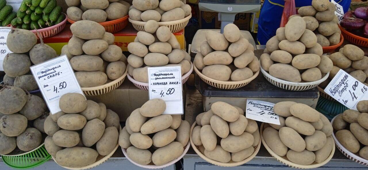 Любопытно было взглянуть и на то, сколько же стоит в середине апреля картофель. За мелкий просят 2,5 рубля, за приличного вида и размера – по 3,5-4,5 рубля. Дороже многих яблок. Нашлась картошка и за 18 рублей! Но это молодая, из теплицы в Крупском районе.