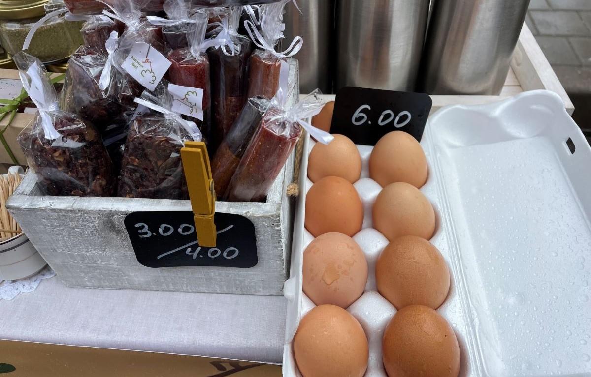 Продают березовый сок, за трехлитровую банку – 20 рублей. На точках с чаем для покупателей заварили полные термосы и самовары. Есть всевозможные сборы и травы. Продают даже молотую кору осины. В среднем за упаковку чая – 10 рублей. На рыночке можно найти самые дешевые домашние яйца – 6 рублей за десяток.