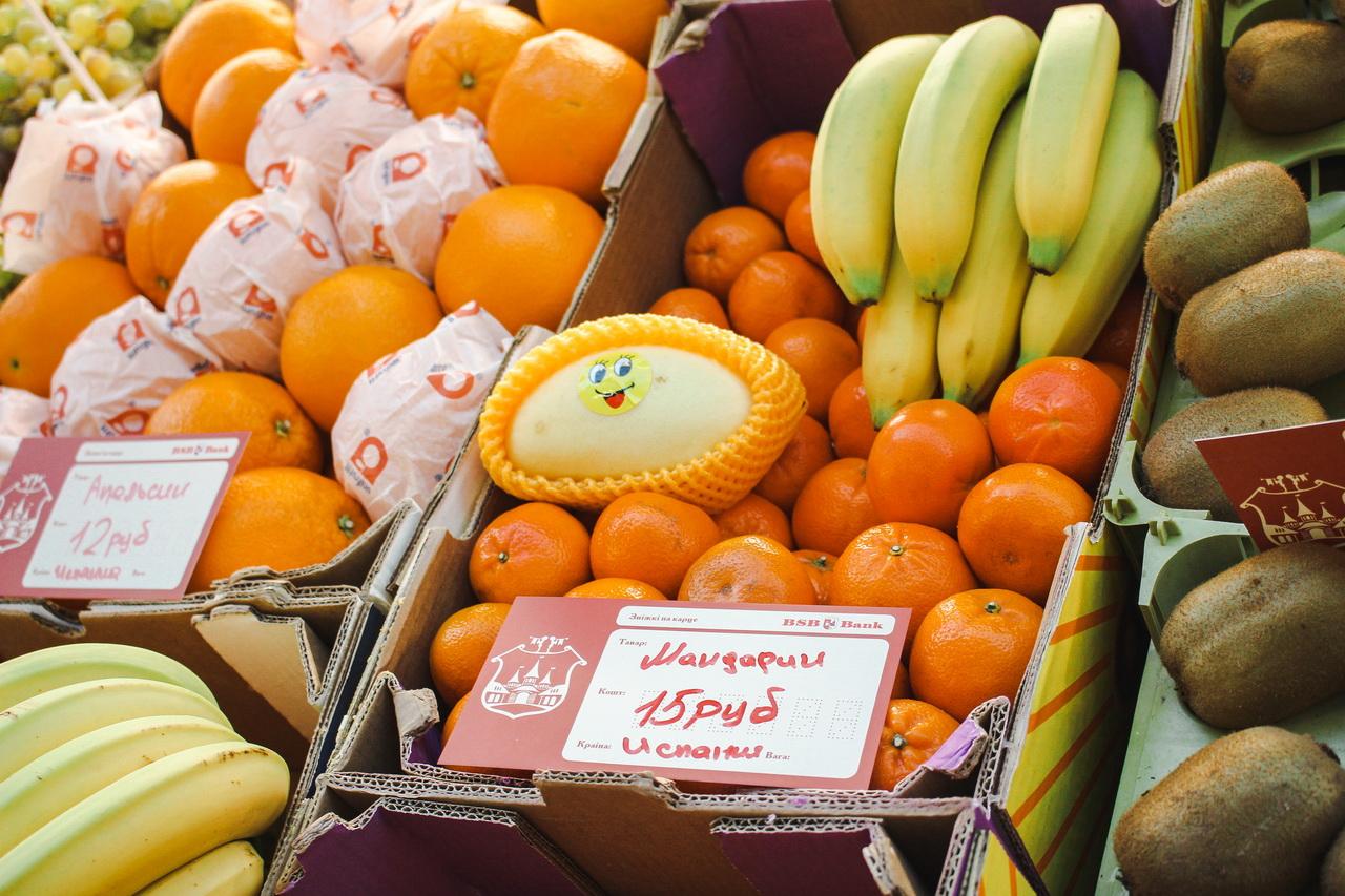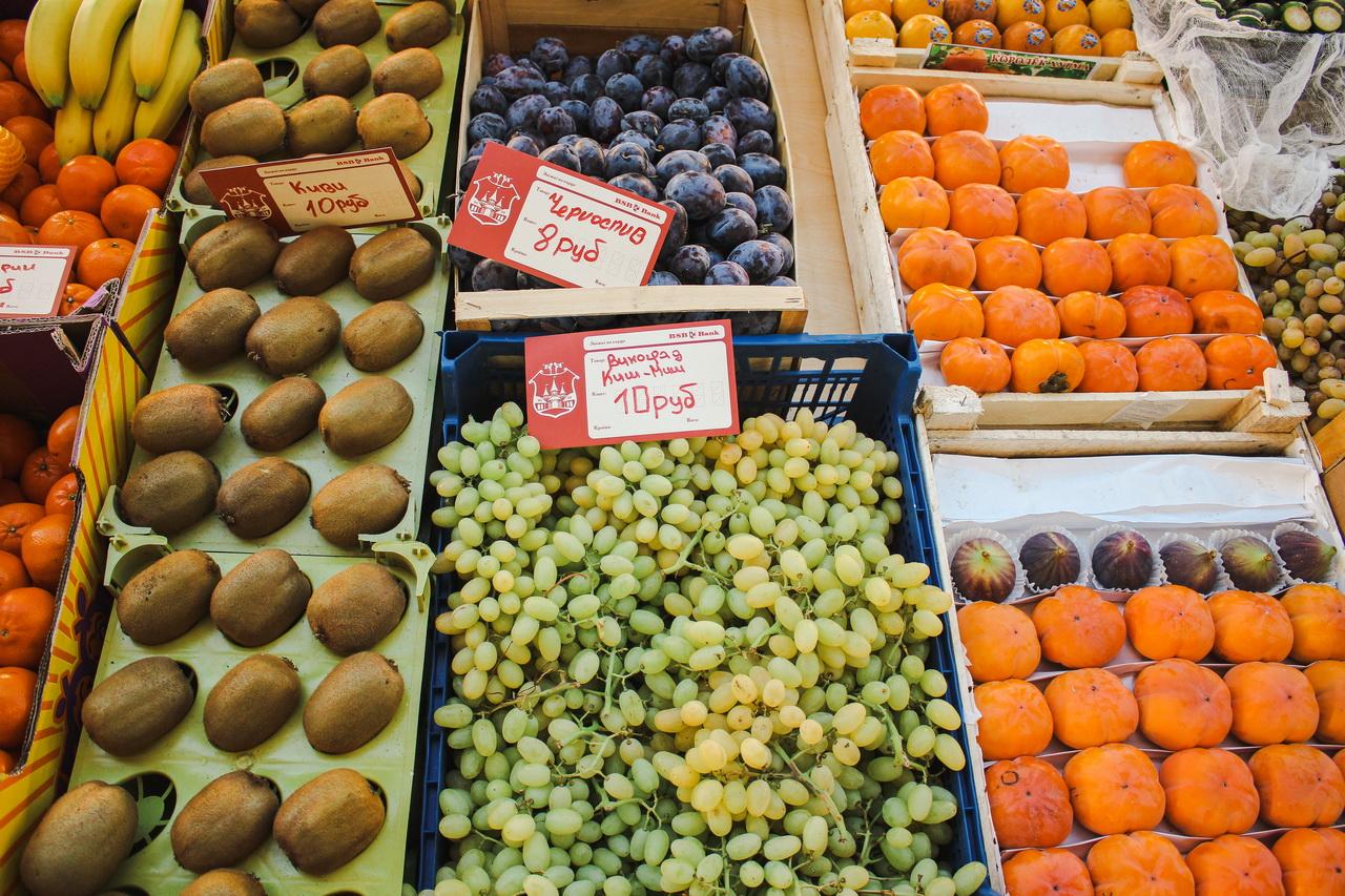 Хурма «Шоколадный королек» и «Ромашка» обойдутся в 8 рублей, яркие гранаты – 15; мандарины из Испании отдают за 15 рублей. Апельсины за 12. Киви – 10 рублей, виноград «Киш-миш» – 10: черный виноград обойдётся в 8,50, бананы – 6, 50 за кило. Обнаружен заморский фейхоа за 12 рублей.