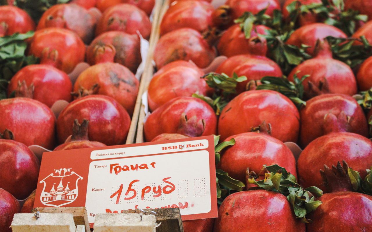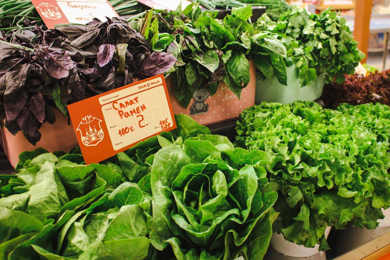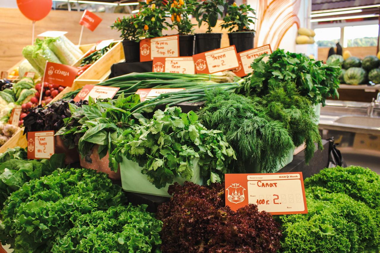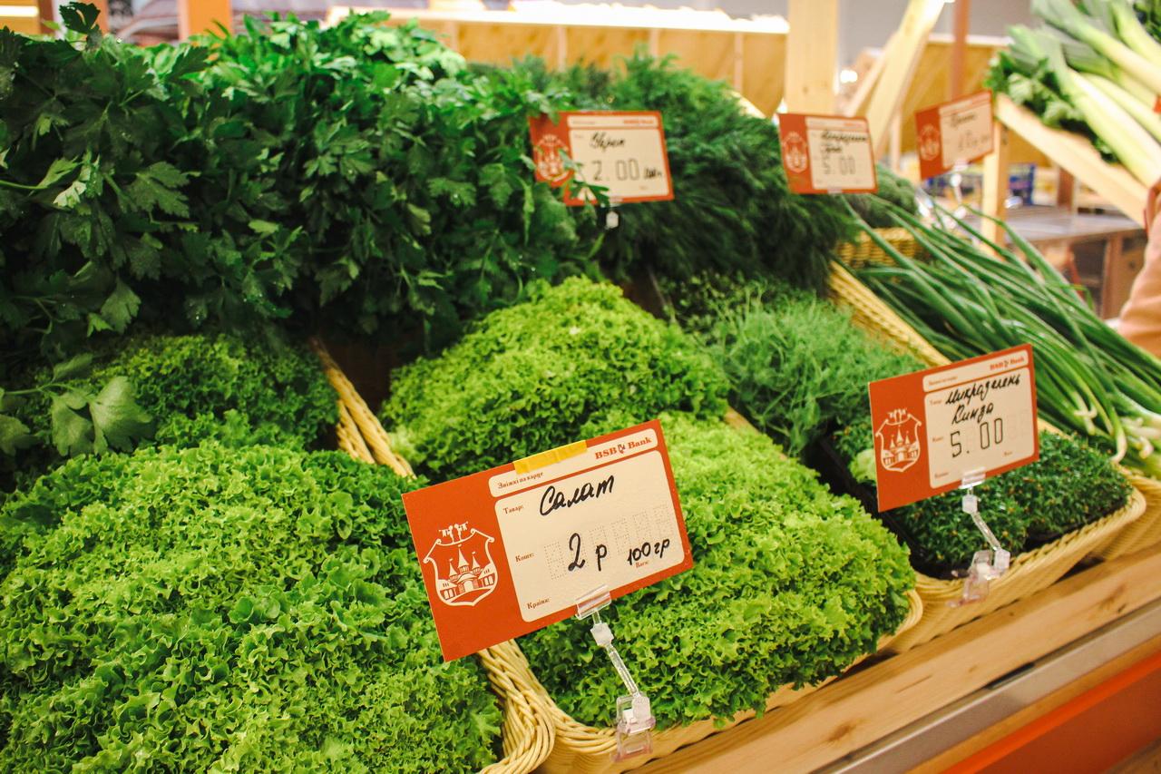 В изобилии представлена яркая зелень. Базилик, Ромен, укроп, лук и петрушка за 100 грамм просят 2 рубля. За белорусские лисички придётся выложить 20 рублей за 1 кг. Чеснок из Узбекистана обойдётся в 12,50, перец 4 рубля, огурец 3,50, помидоры 5 рублей.