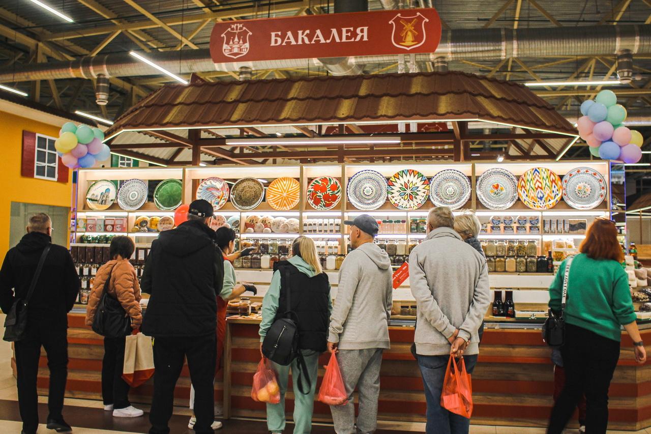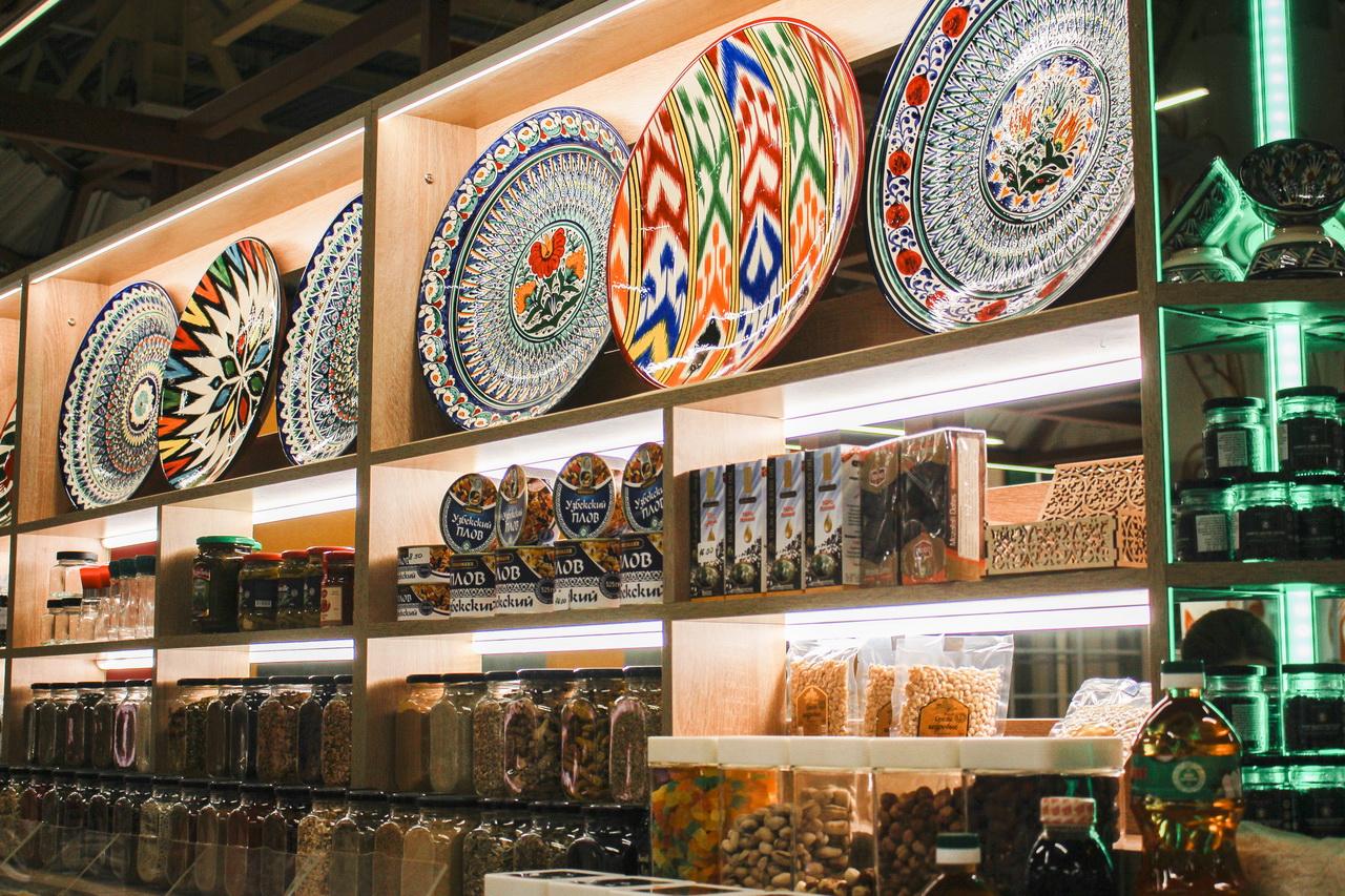 Есть павильон товаров из Узбекистана. Здесь можно купить ароматные специи, чай, кофе, также орехи и сухофрукты. Узбекский плов в банке за 8,50.