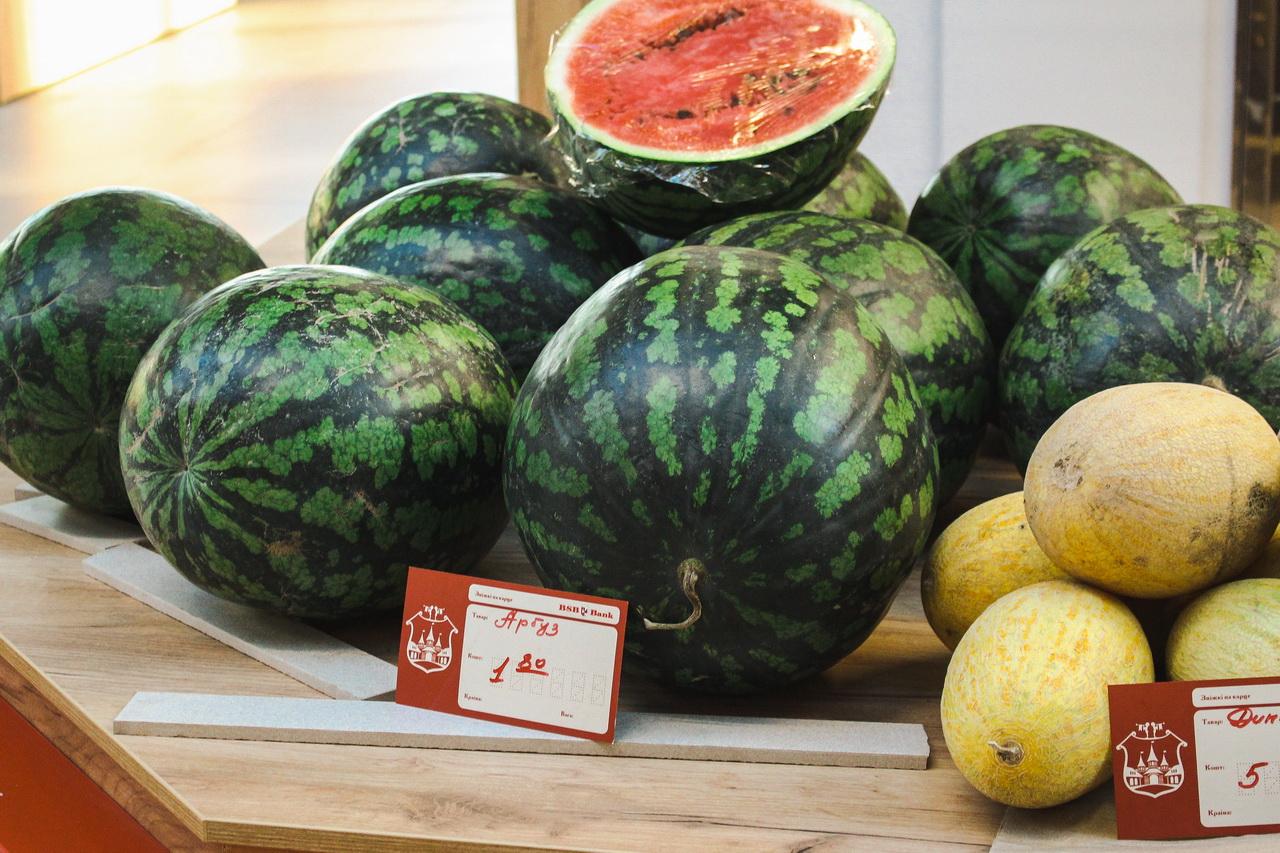 Белорусские яблоки отдают за 4 рубля. Астраханский арбуз 1,80 за килограмм, дыня за 5 рублей. Инжир – 5 рублей, малина – 18, лимон из Турции – 8, 50 за килограмм.