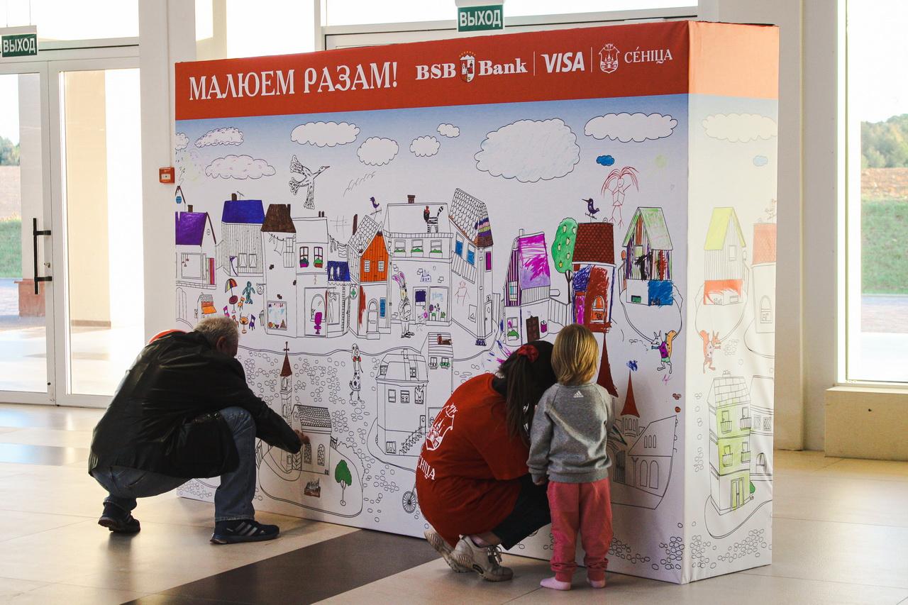 Под своей крышей «замок» собрал продуктовый рынок, небольшой фудкорт, магазины и даже отделение банка. На входе покупателям сразу же предлагают оформить специальную платежную карту «Сеница». Солидная площадь ТЦ заполнена не полностью. В каждом крыле масса свободных павильонов с приглашением стать арендатором. Магазина оптовых цен пока не наблюдается. Для малышей обустроена детская зона. Можно порисовать на большой раскраске и с удобством скоротать время, пока родители заняты покупками.