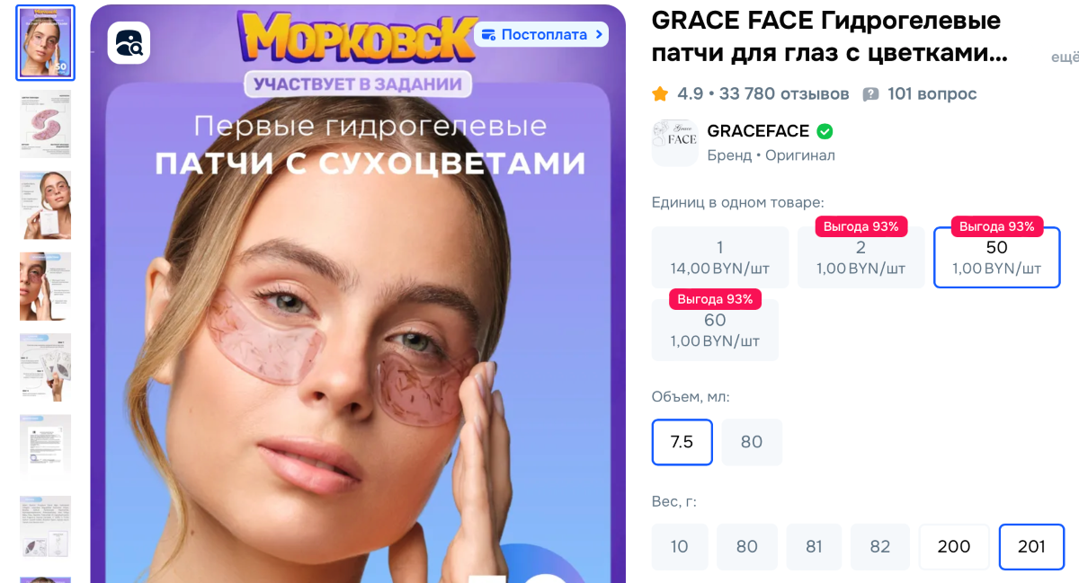 Средство предназначено для борьбы с отеками и темными кругами под глазами. Патчи помогают с самого утра увлажнить и напитать кожу, также имеют антивозрастной эффект. На скидочных позициях можно словить баночки стоимостью около 5 рублей.