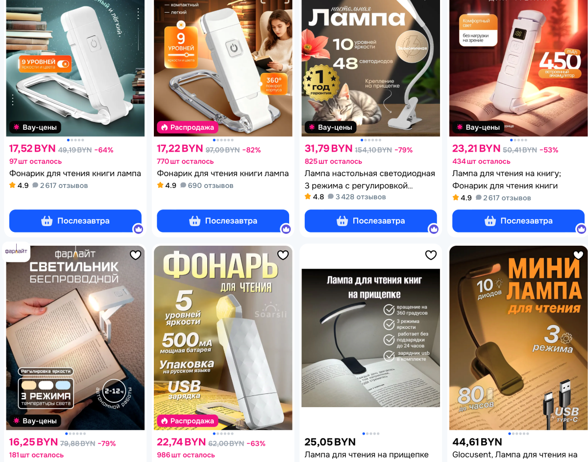 Лампа обеспечит комфортное чтение при неидеальном освещении, например, в постели в темное время суток. Устройство закрепляется на книгу. В числе функций – настройка комфортного света. При этом устройство направлено только на страницу, не мешая тем, кто находится рядом. Прибор собрал восторженные отзывы от пользователей. «Это самая лучшая штучка для чтения, которую я покупала! Удобный, яркий, не режет глаза, долго держит заряд. Идеально, чтобы читать по ночам». Другая покупательница отметила, что лампа отлично справляется со своей задачей, и если б не умельцы из Поднебесной, то пришлось бы читать при свете лучины. Стоимость гаджета – от 16 до 45 рублей.
